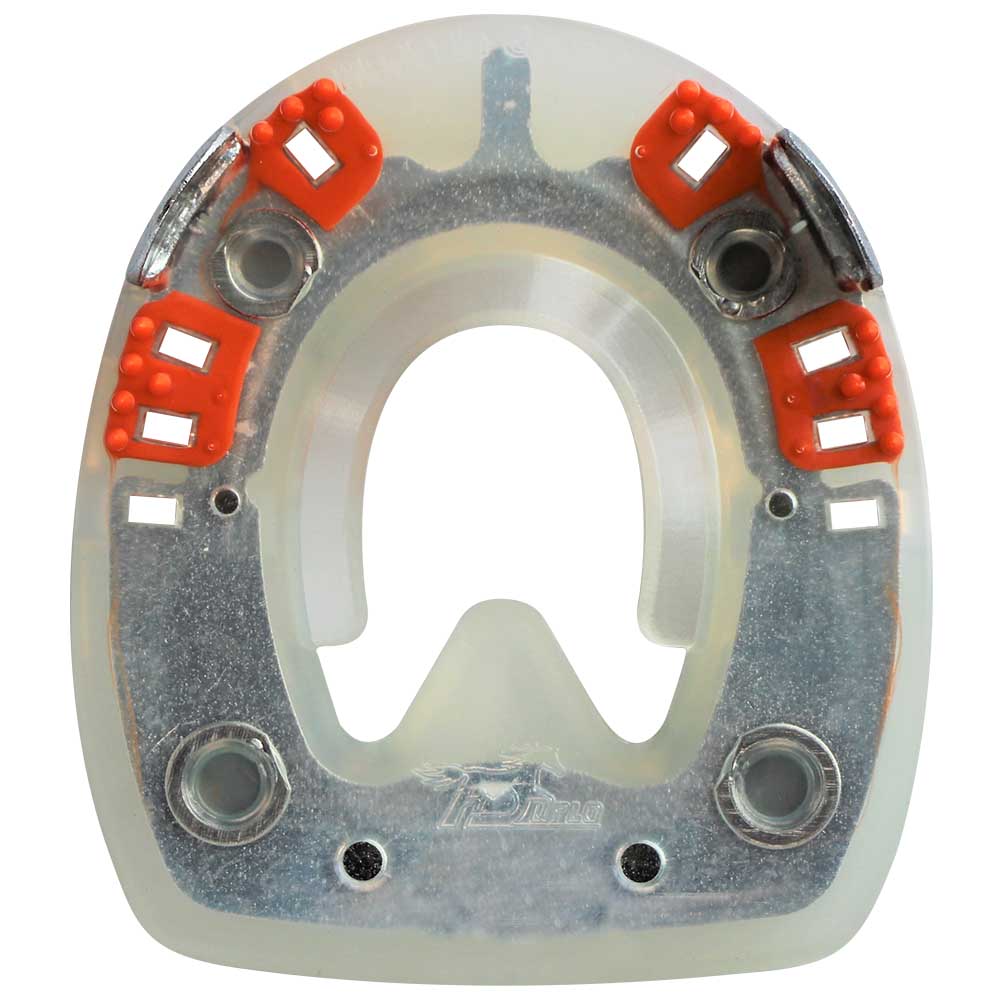 | Bar / Frog Support | The synthetic bar can improve the blood circulation of the hoof. Special characteristic of the HDS Tration: The sturdy frog support with a metal core in the rear area of the hoof provides additional stability, comparable to a straight bar shoe. In the region of the frog apex, the Traction also features a flexible frog support made of pure synthetic material |